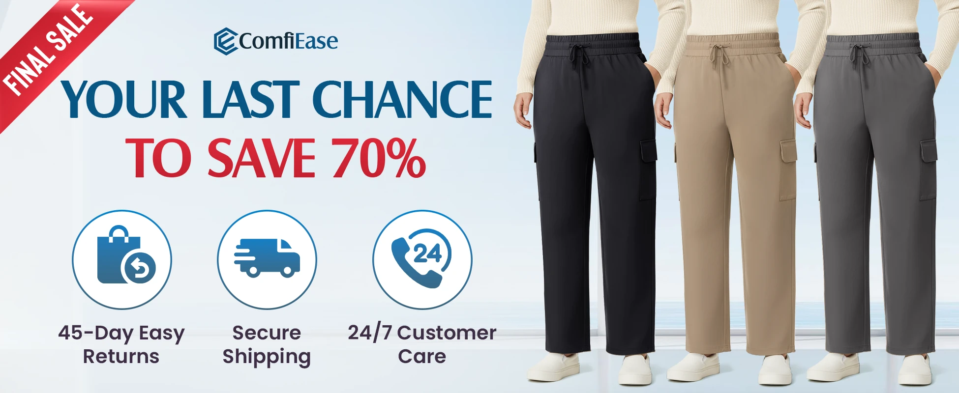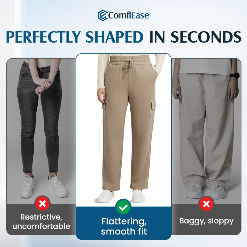 Say goodbye to stiff, restrictive pants and baggy, sloppy fits. Enjoy a smooth, flattering silhouette instantly — comfort that looks as good as it feels.