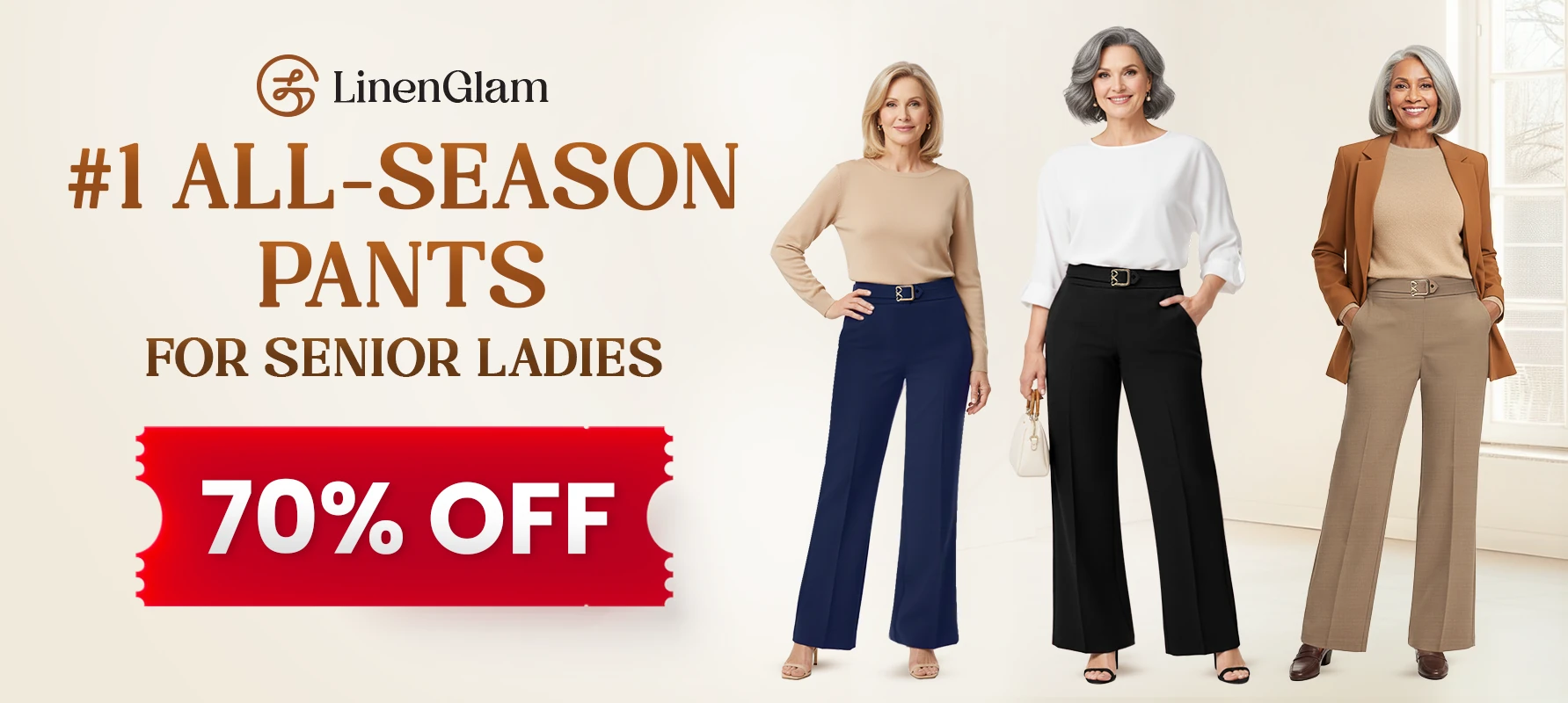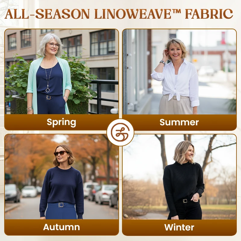 True elegance never fades - and neither should your comfort. Woven from all-season and ultra-soft LinoWeave™, LinenGlam is undoubtedly women's #1 choice for combining high style with total ease. These pants are tailored to flatter your figure naturally, bringing lasting comfort and sophistication to every setting