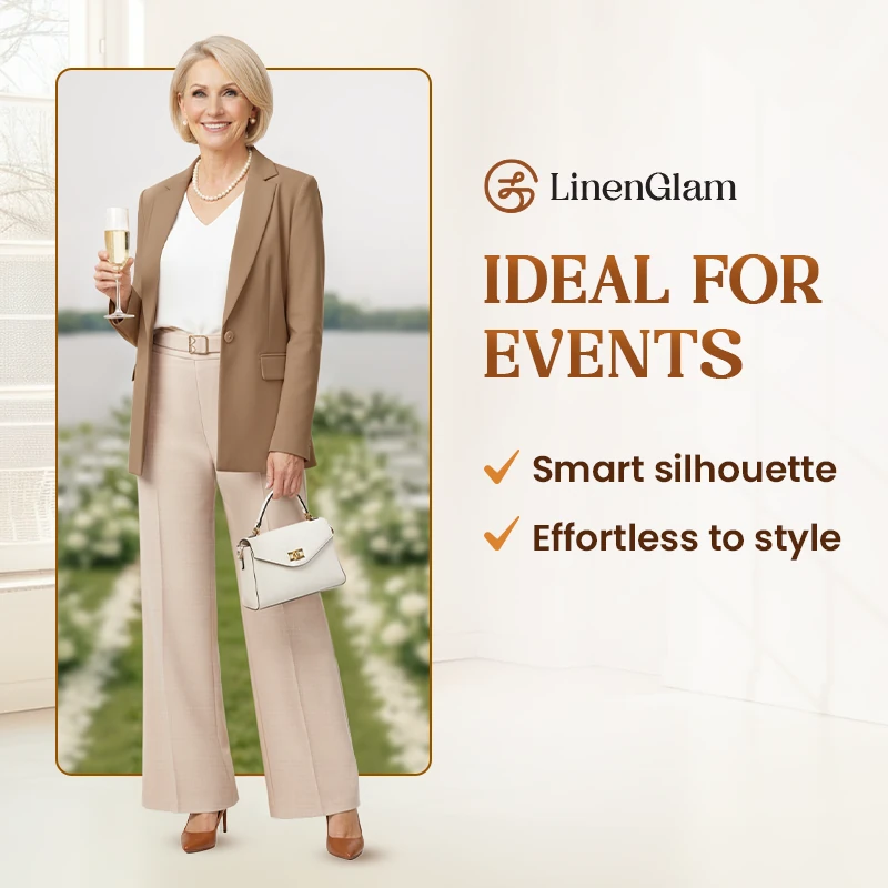 Reclaim your confidence with the flattering fit of LinenGlam. Expertly tailored for all leg shapes, gracefully balancing and refining your figure with effortless sophistication.